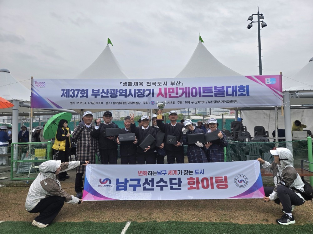 ●내용: 4월 17일(금) 삼락생태공원 게이트볼장에서 "제37회 부산광역시장기 시민게이트볼대회"가 열렸습니다. 이날 정춘식 남구체육회장님께서 오셔서 남구 선수단을 위한 큰 격려를 해주시며 자리를 빛내주었습니다. 남구 선수단은 3팀 출전하여 3위의 성적을 거두는 큰 쾌거를 달성했습니다. 남구 선수단 여러분 수고 많으셨습니다!