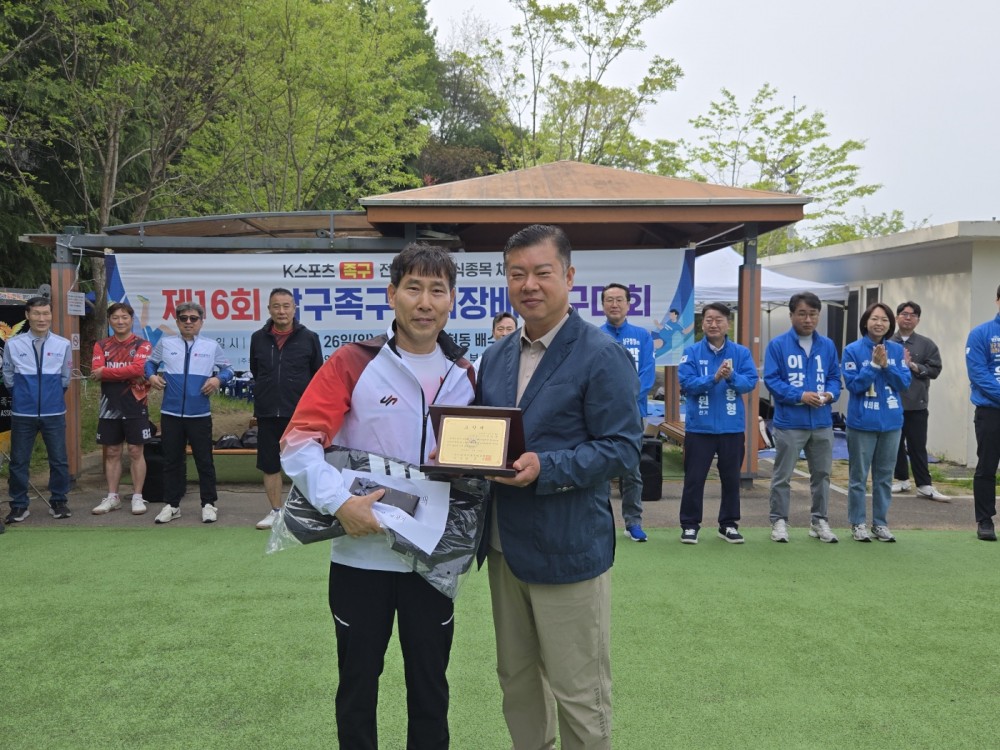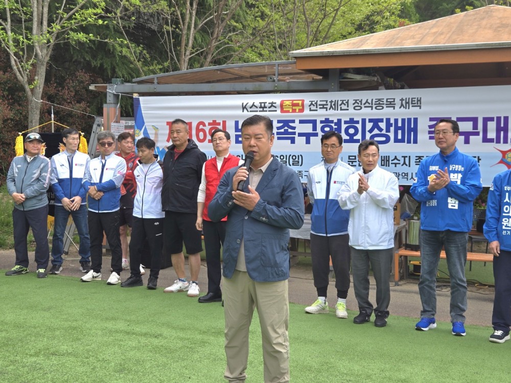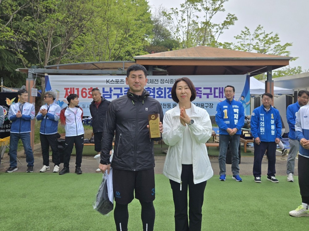 ●내용: 4월 26일(일) 문현동 배수지 족구전용구장에서 '제16회 남구족구협회장배 족구대회'가 개최되었습니다. 이날 정춘식 남구체육회장님과 남구의원님들도 참석하여 자리를 빛내주셨습니다. 참가하신 선수 여러분의 열정과 노력에 큰 박수를 보내드리며, 앞으로도 부상 없이 멋진 경기 이어가시길 응원합니다.