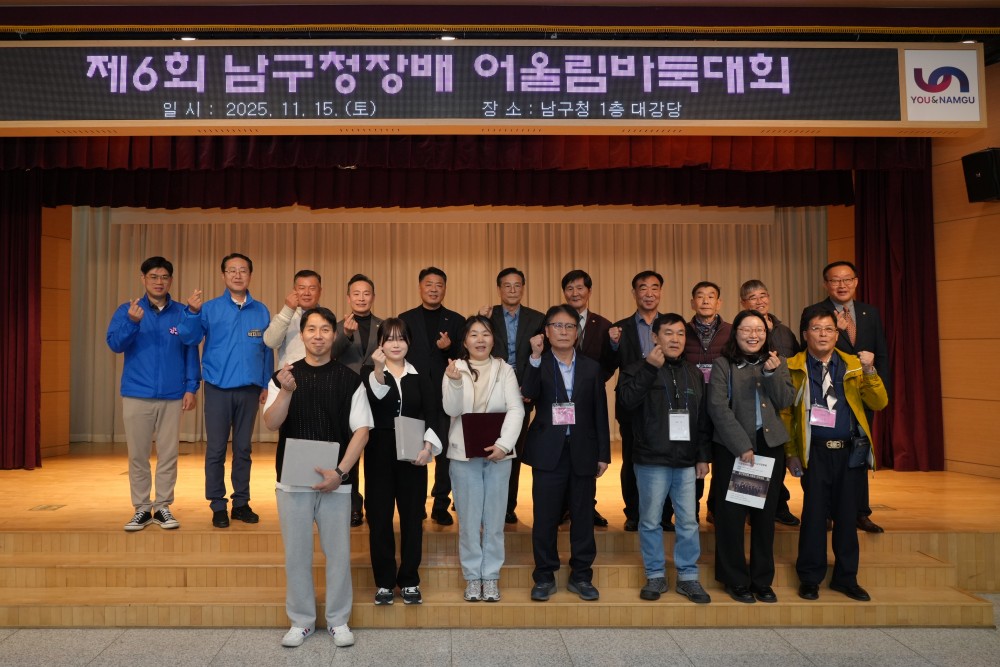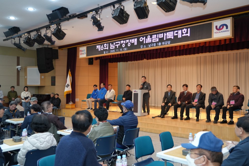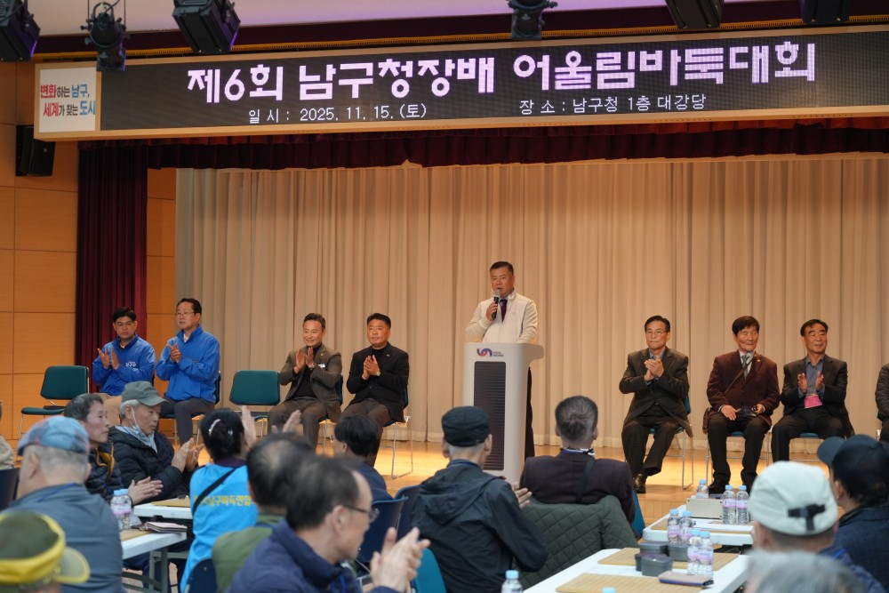 ●내용: 11월 15일(토) 남구청 1층 대강당에서 '제6회 남구청장배 어울림 바둑대회'가 개최되었습니다. 이날 정춘식 남구체육회장님과 오은택 남구청장님, 서성부 남구의회의장님 등 많은 내빈들이 참석하여 자리를 빛내주셨습니다. 어린이부터 어르신까지 다양한 연령대가 참가하였고 성황리에 대회가 마무리되었습니다.