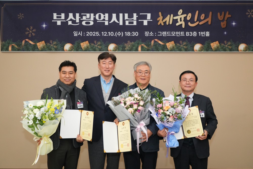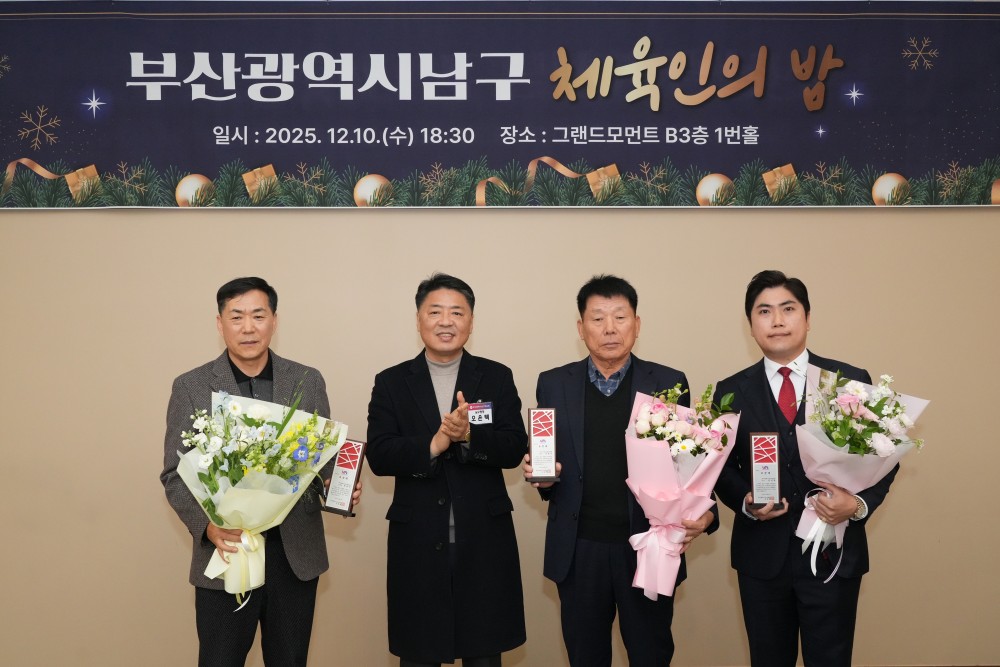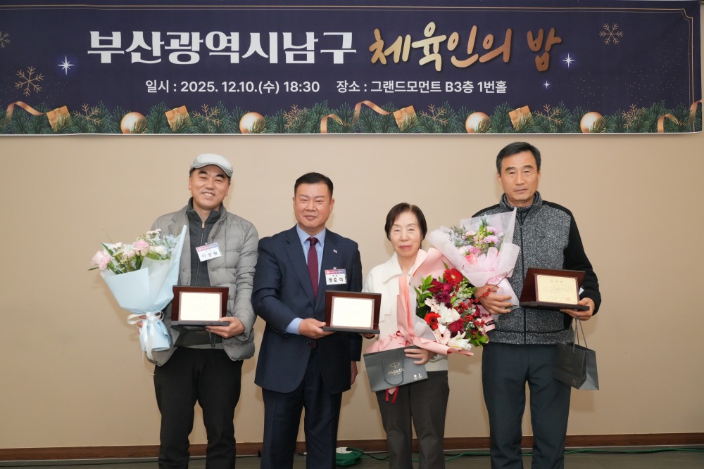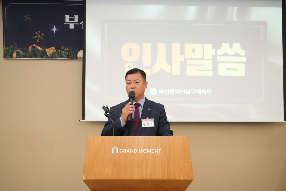 ●내용: 12월 10일(수) 그랜드모먼트 B3층 1번홀에서 '2025 부산광역시 남구 체육인의 밤'행사가 열렸습니다. 이날 정춘식 남구체육회장님, 오은택 남구청장님, 서성부 남구의회의장님 등 시·구의님들과 회원종목단체 회장, 사무장님들도 참석하여 자리를 빛내주셨습니다. 오프닝 공연부터 시작하여 행운권 추첨까지 다양한 행사가 진행되었고 남구축구협회 트로피 전달식과 남구 생활체육진흥 유공자에 대한 표창패 수여식도 있었습니다.
