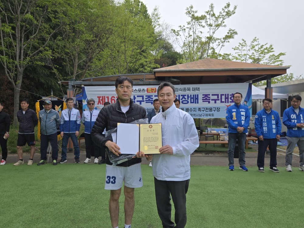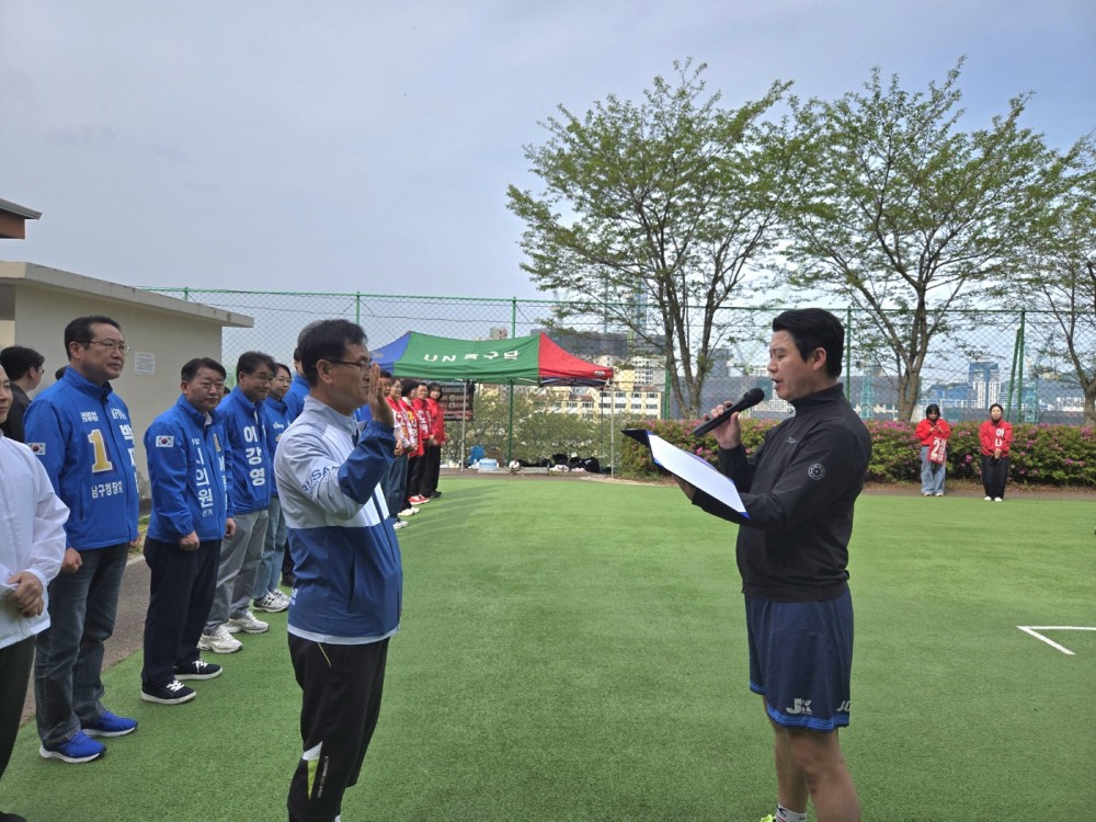 ●내용: 4월 26일(일) 문현동 배수지 족구전용구장에서 '제16회 남구족구협회장배 족구대회'가 개최되었습니다. 이날 정춘식 남구체육회장님과 남구의원님들도 참석하여 자리를 빛내주셨습니다. 참가하신 선수 여러분의 열정과 노력에 큰 박수를 보내드리며, 앞으로도 부상 없이 멋진 경기 이어가시길 응원합니다.