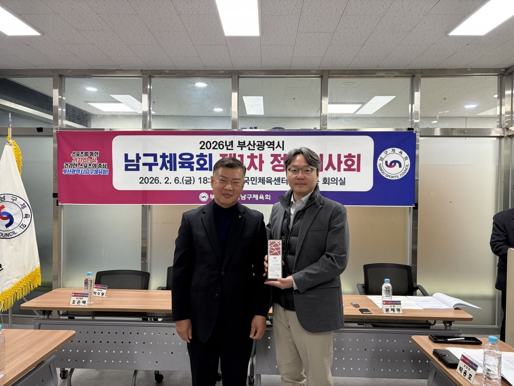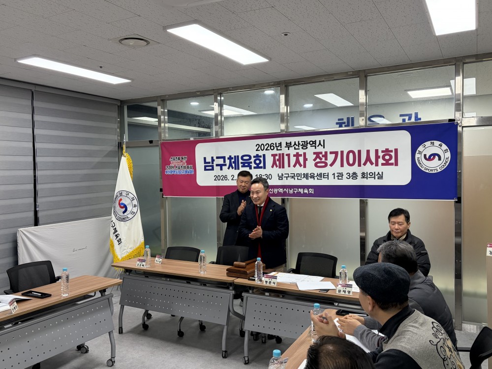 ●내용: 2월 6일 남구국민체육센터 1관 3층 남구체육회 회의실에서 '2026년 부산광역시남구체육회 제1차 정기이사회'가 열렸습니다. 정춘식 남구체육회장님, 박수영 국회의원님, 서성부 남구의회의장님을 비롯하여 남구체육회 이사님, 남구청 교육체육과 직원들도 참석해주셨습니다. 남구체육회 운영 및 발전을 위해 힘써주시는 모든 분들에게 감사하다는 말씀을 전합니다.